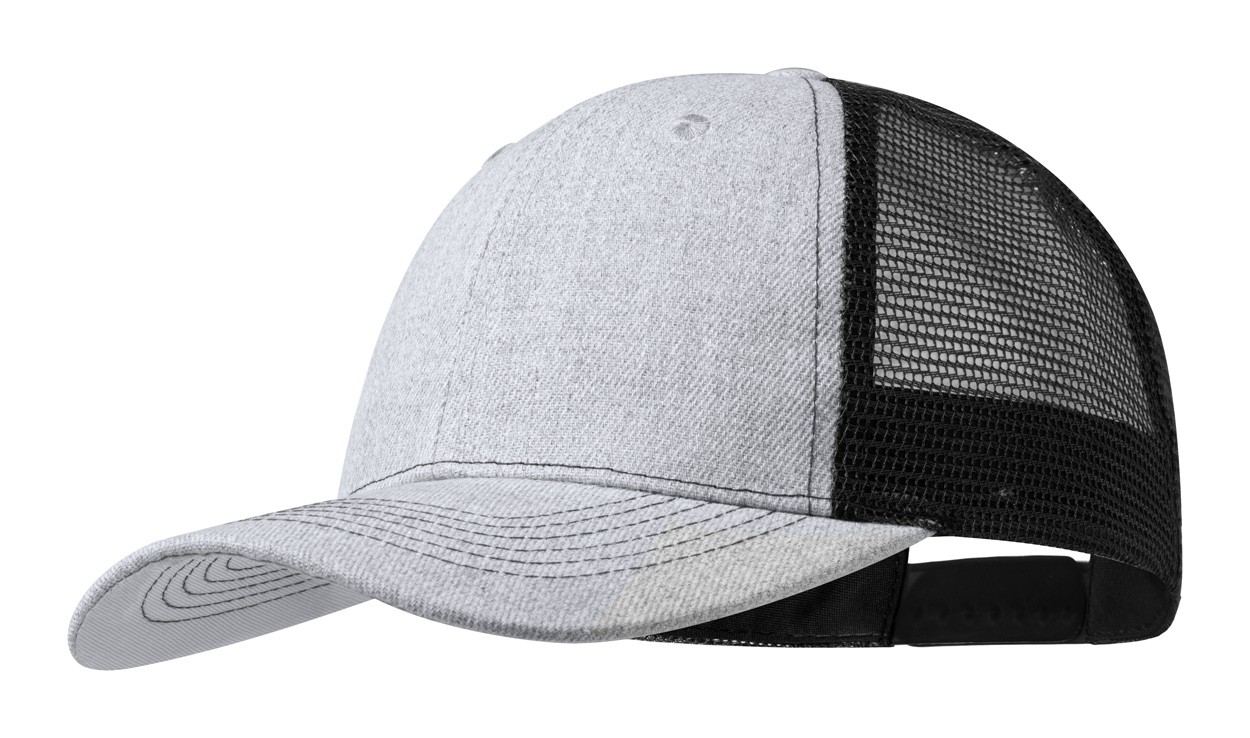 Șapcă de baseball din poliester cu 6 panele, în spate cu plasă colorată, curea de ajustare a mărimii din plastic.