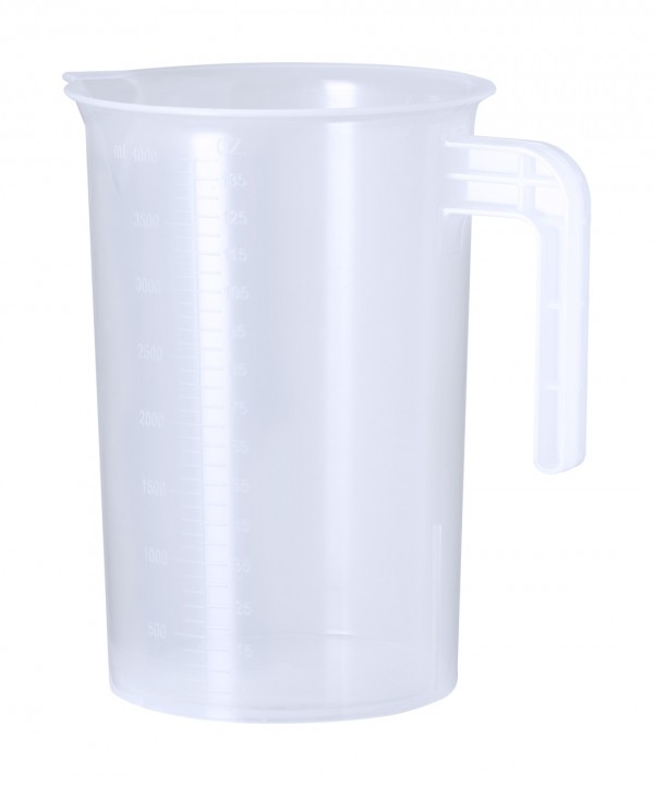 Measuring jug made of resistant transparent PP, with integrated handle, 4L.