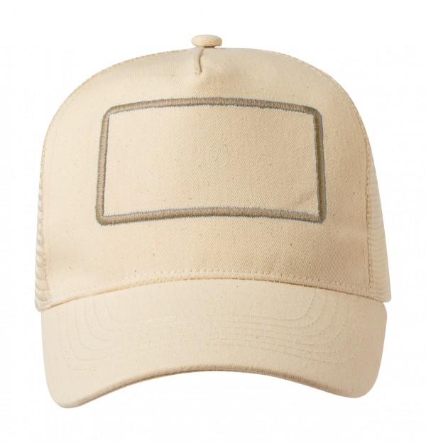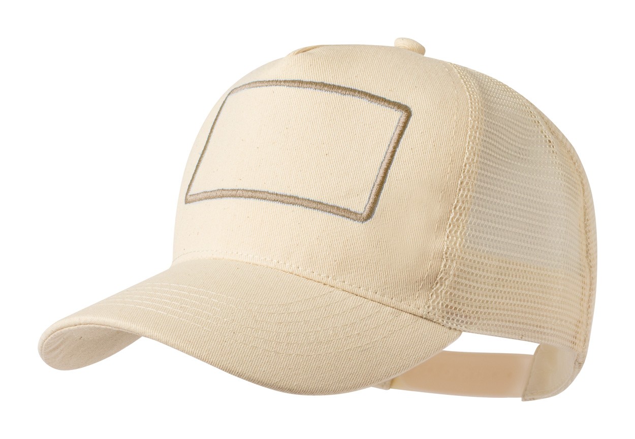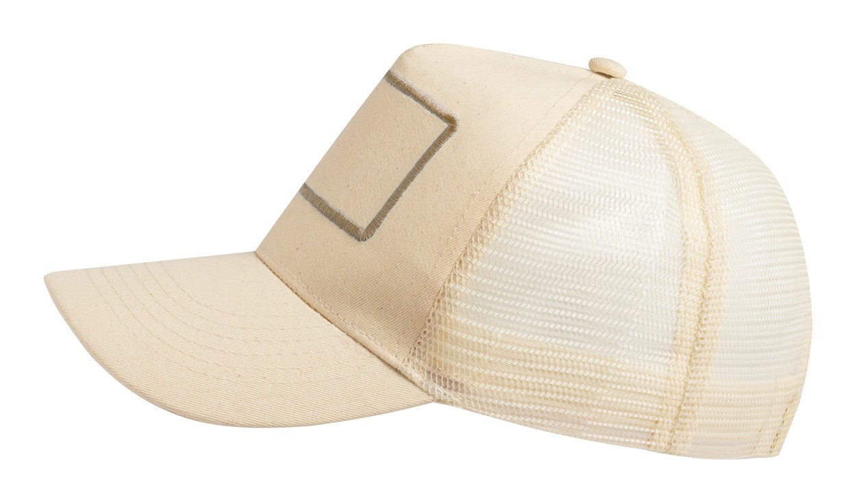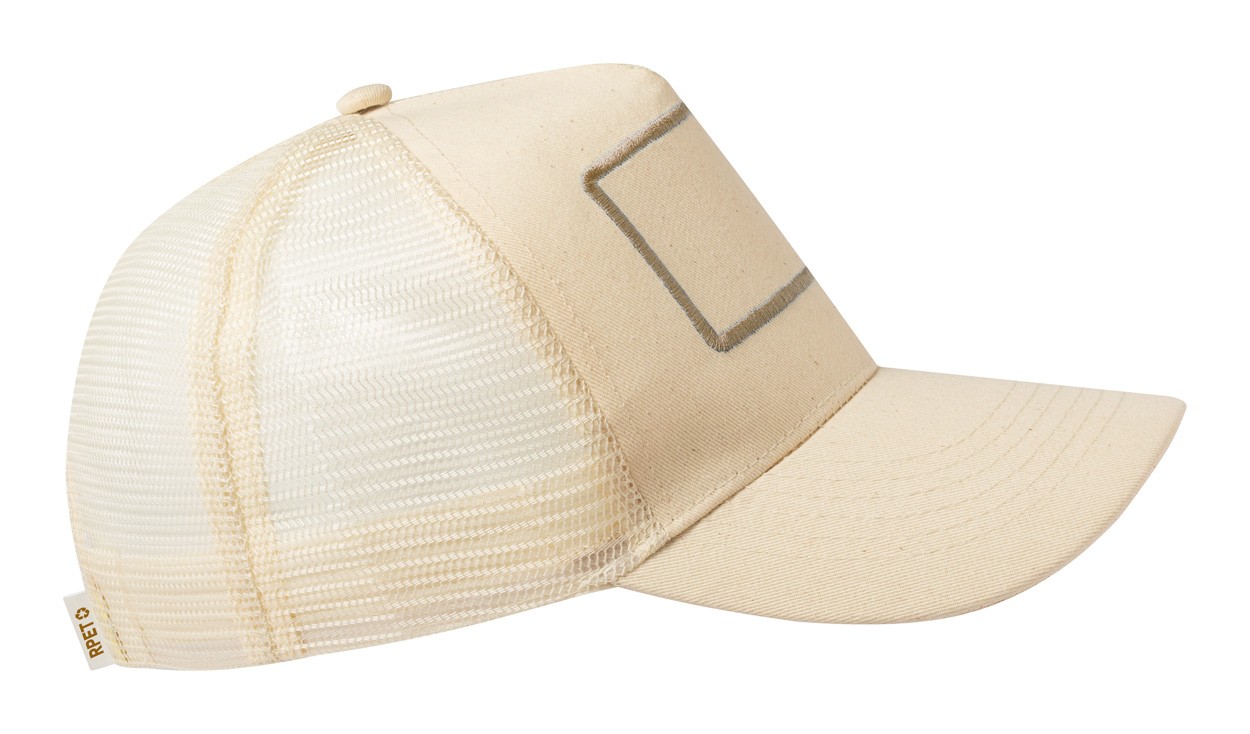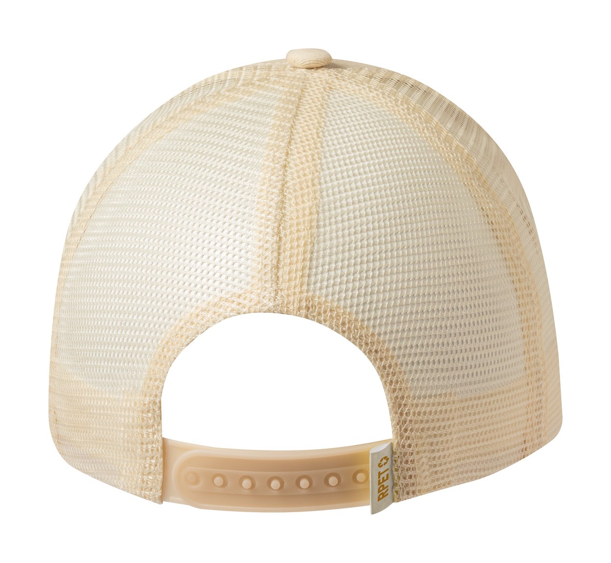 RPET polyester baseball cap with 5 panels and plastic closure.