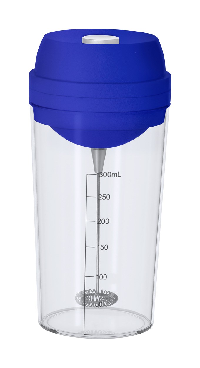 Cană de amestecare, din plastic, cu mixer electric în capac cu 2 moduri, scară de măsurare și baterie reîncărcabilă incorporată. 300 ml. Cu baterie de 500 mAh.