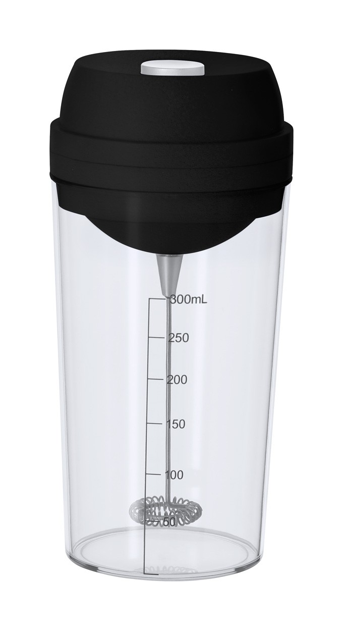 Cană de amestecare, din plastic, cu mixer electric în capac cu 2 moduri, scară de măsurare și baterie reîncărcabilă incorporată. 300 ml. Cu baterie de 500 mAh.