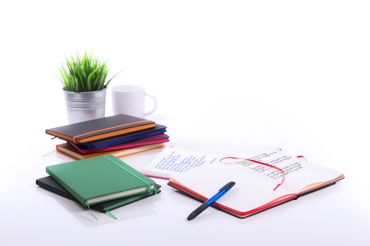 Carnețel cu 80 de coli, copertă din piele ecologică, cu semn de carte și elastic, A5.
