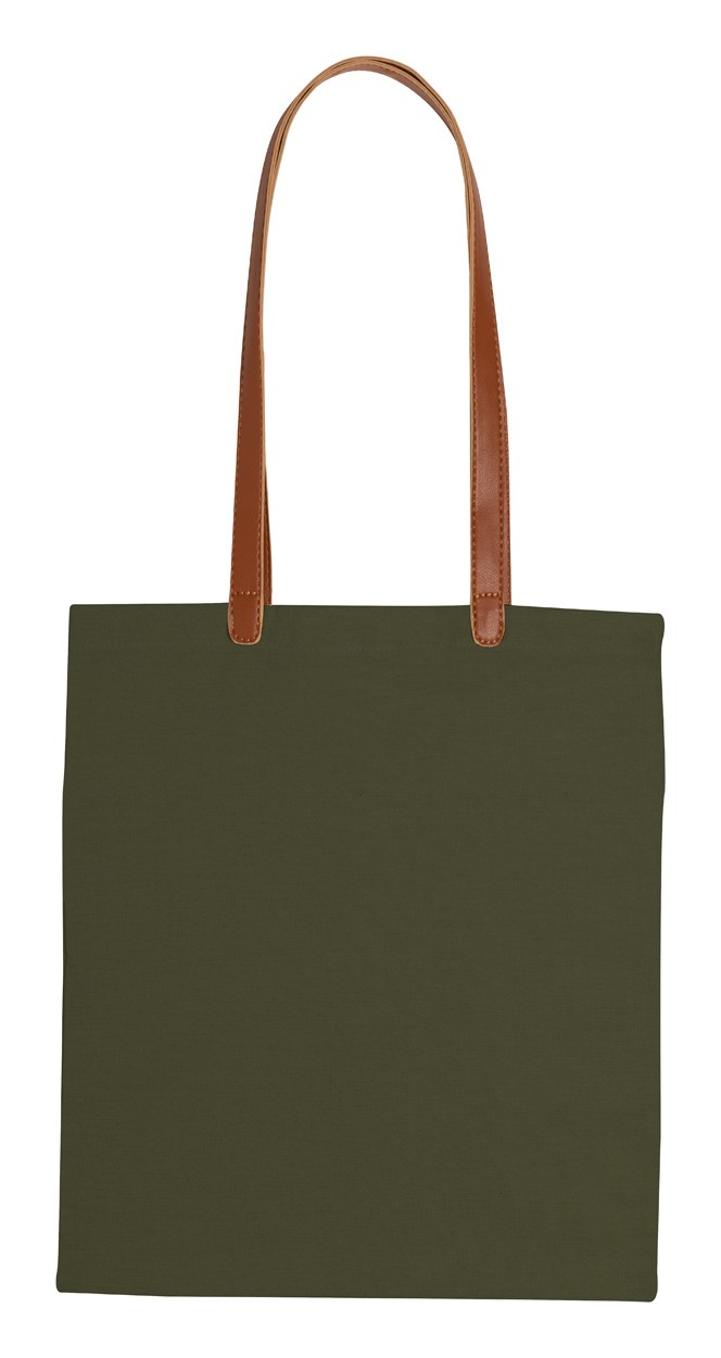 Geantă de cumpărături din bumbac cu mânere lungi din înlocuitor piele. 100% bumbac, 200 g / m².