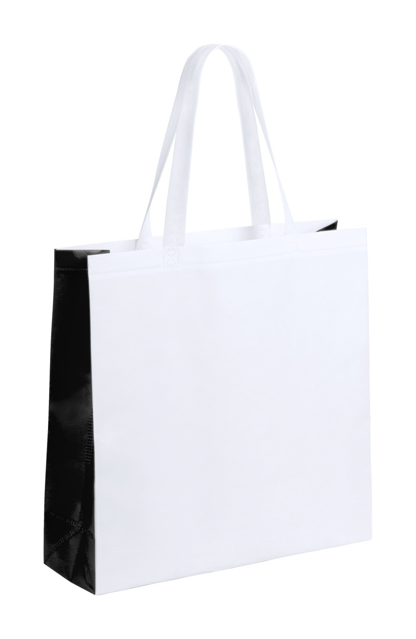 Geantă albă, laminată pentru cumpărături, din material nețesut, interior colorat.