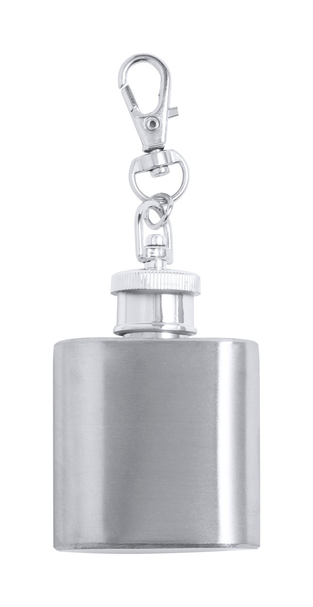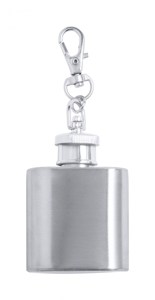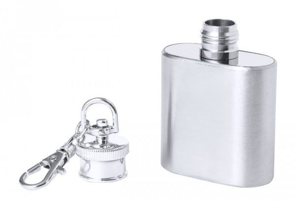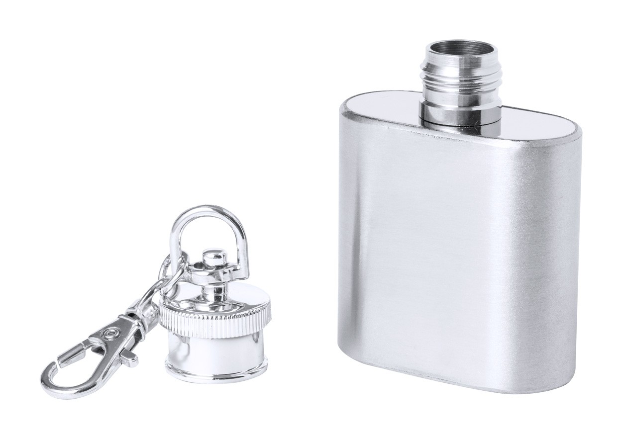 Stainless steel mini hip flask with carabiner, 30 ml.