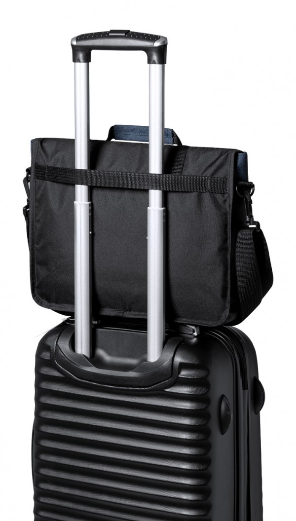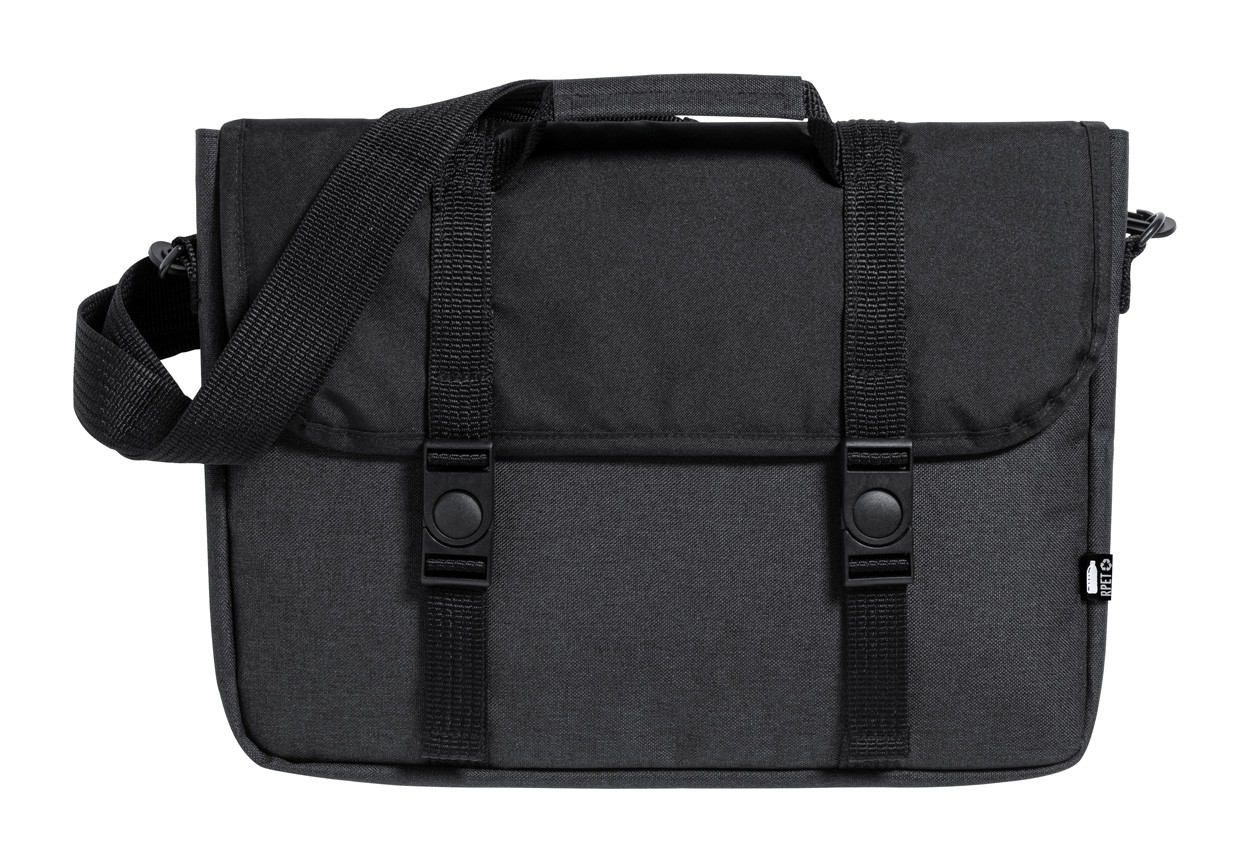 Geantă pentru documente RPET complet căptușită, cu închidere cu cataramă, curea pentru cărucior și curea de umăr reglabilă. Poliester 600D RPET. Cu etichetă distinctivă RPET.
