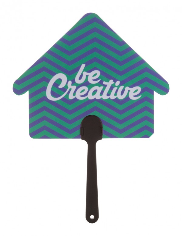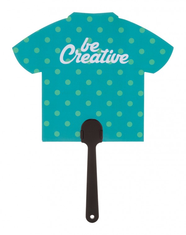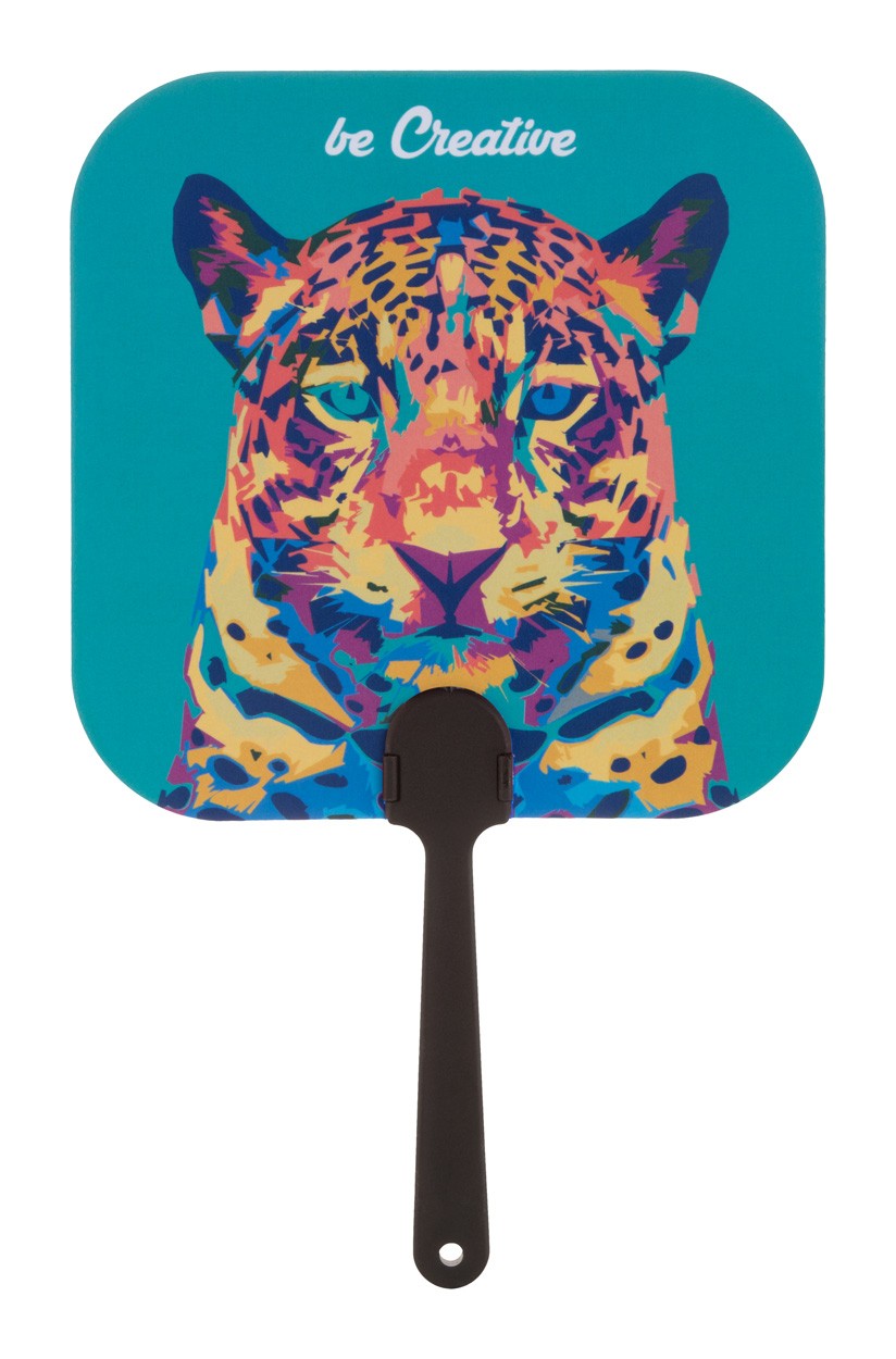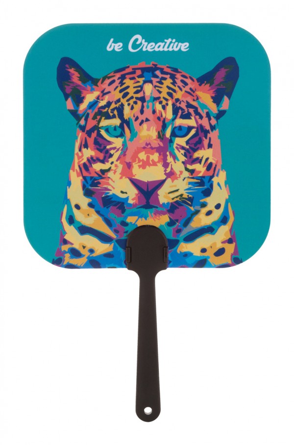 Evantai cu design unic, din hârtie laminată, mâner din plastic. Imprimare digitală pe ambele feţe. Cantitate minimă de comandă: 100 buc.