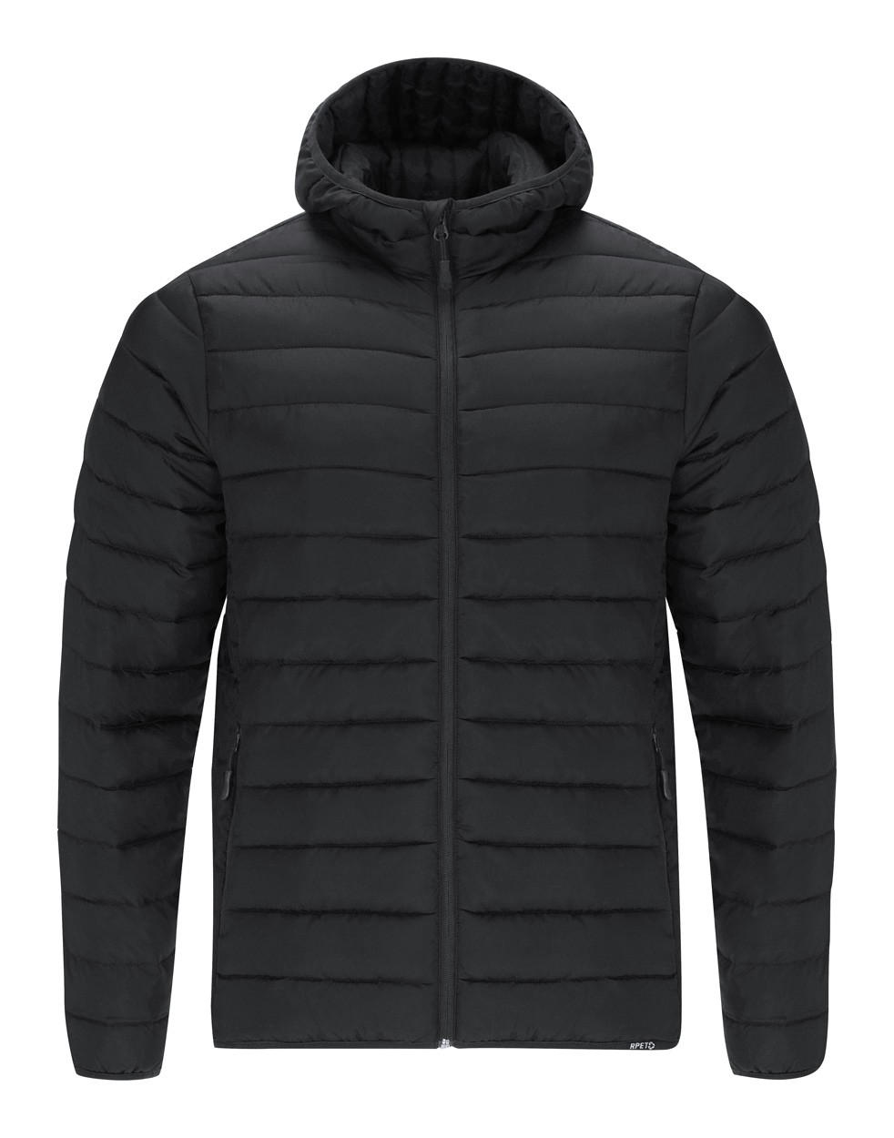 Jachetă rezistentă la vânt și apă, cu fermoar, 2 buzunare laterale cu fermoar și glugă. Cu husă din poliester RPET. 100% poliester RPET cu etichetă distinctivă RPET.