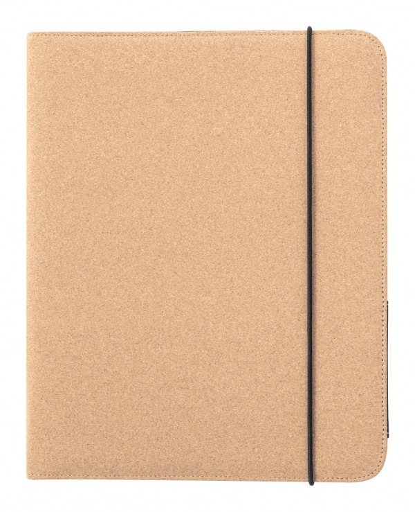 Dosar pentru documente, din plută naturală, cu blocnotes cu 20 de foi dictando și mai multe buzunare interioare pentru organizare.