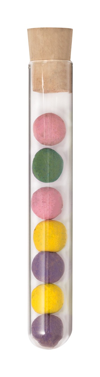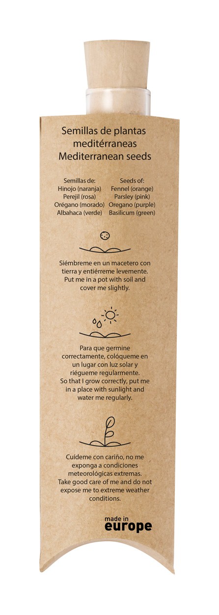 7 pc seed balls with basil, fennel, parsley and oregano seeds. In plastic container with cork stopper, covered with recycled cardboard sleeve.
