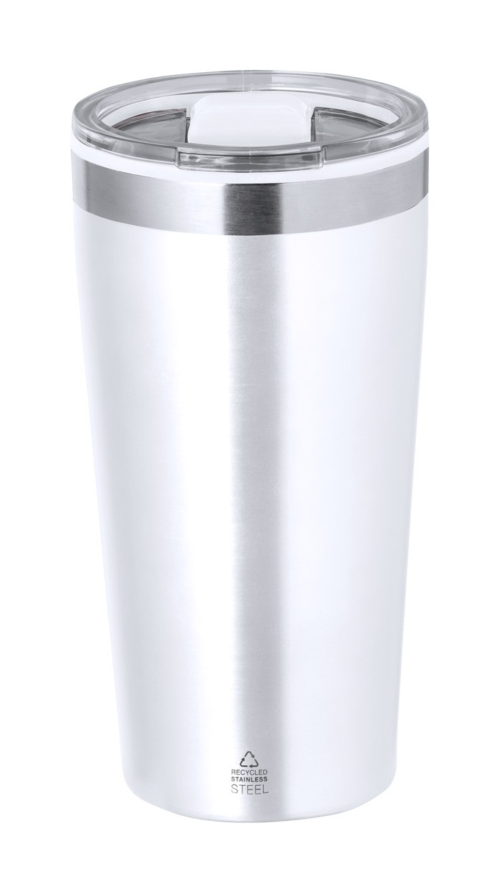Cană termoizolată din oțel inoxidabil reciclat, cu perete dublu, cu capac de băut din plastic PP, 600 ml.