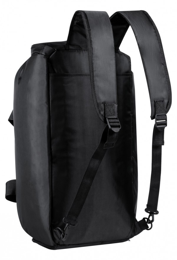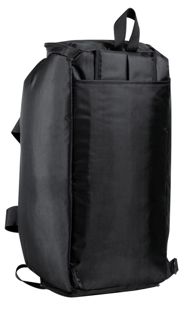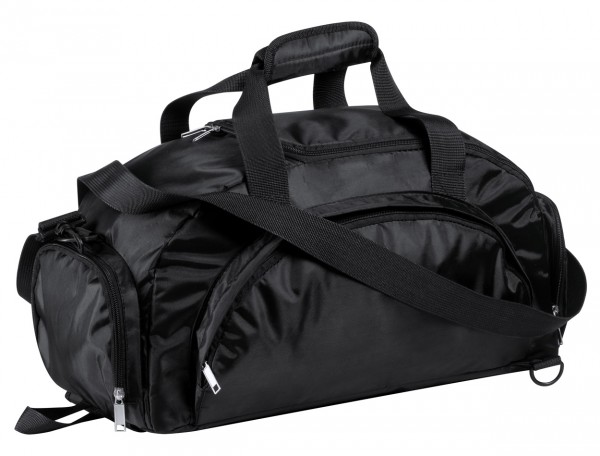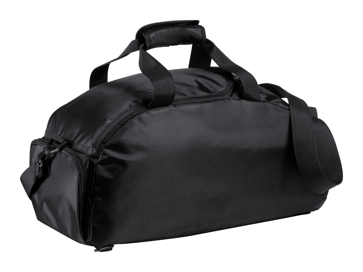Geantă / rucsac sport din nailon cu mai multe compartimente cu fermoar, spate și bretele căptușite.