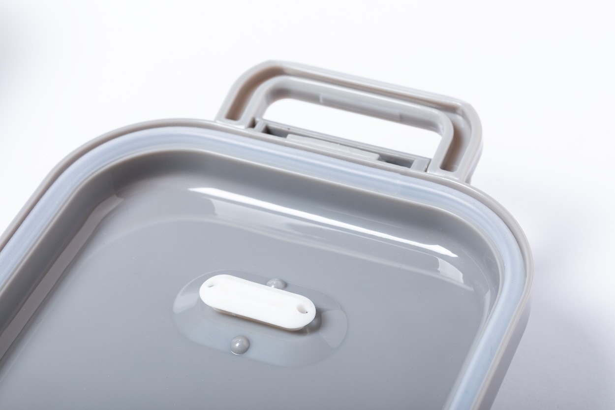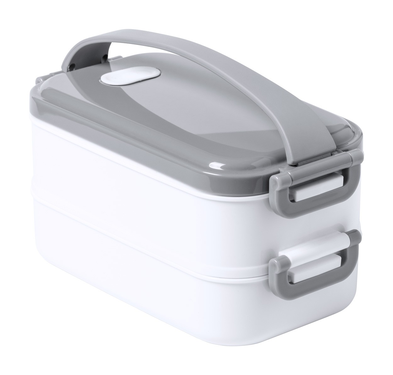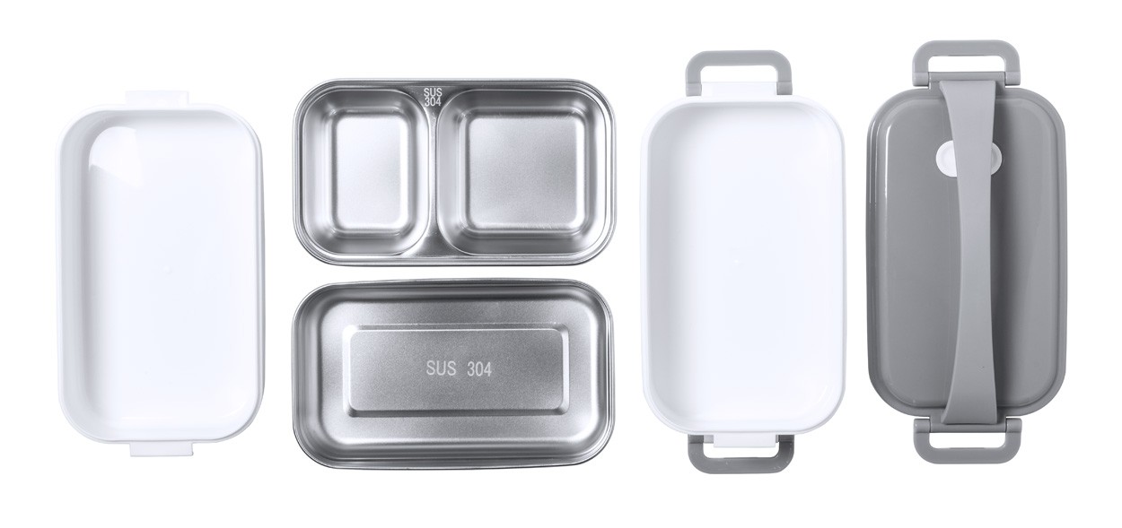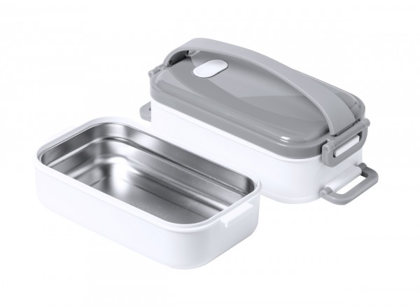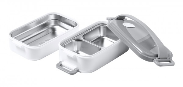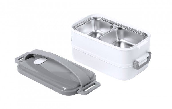 Cutie de prânz termică din plastic cu 2 compartimente, tăviță din oțel inoxidabil și capac de închidere ermetic. Capacitate totală: 850 ml (500 ml și 350 ml). Prin adăugarea de apă fierbinte sub tăvi, efectul termic poate fi prelungit.