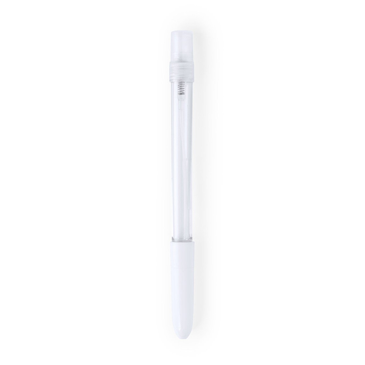 Pix din plastic cu corp transparent, reumplere albastră și spray de dezinfectare deasupra. Capacitate: 10 ml. Livrat fără lichid dezinfectant.