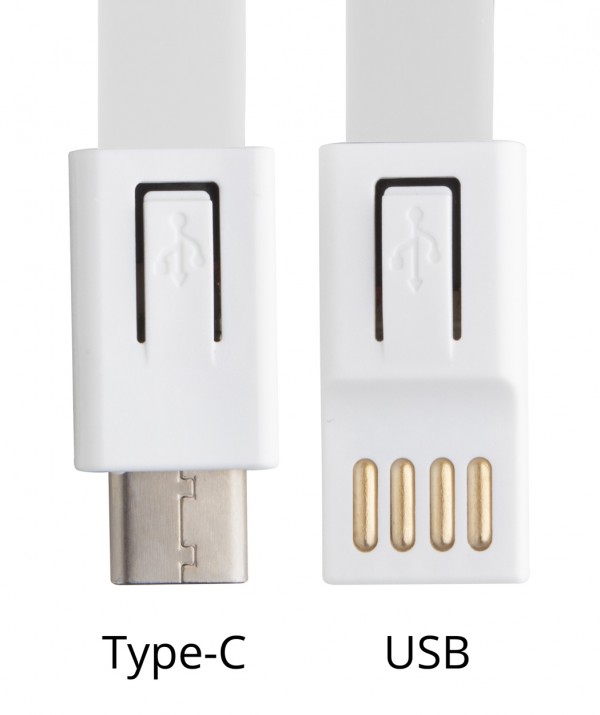 Lanyard cu cablu de încărcare USB tip C și carabină metalică.