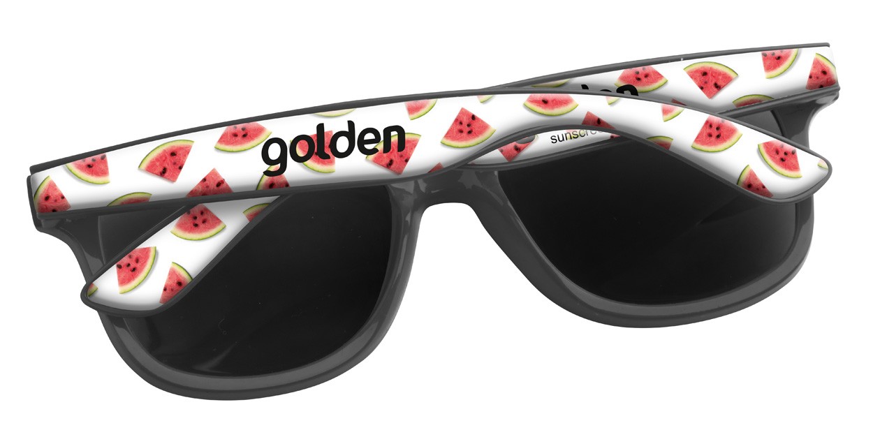 Ochelari de soare din plastic cu brațe speciale pentru epoxy. Cu protecție UV 400. Prețul include personalizarea cu epoxy. Cantitate minimă de comandă: 100 buc.