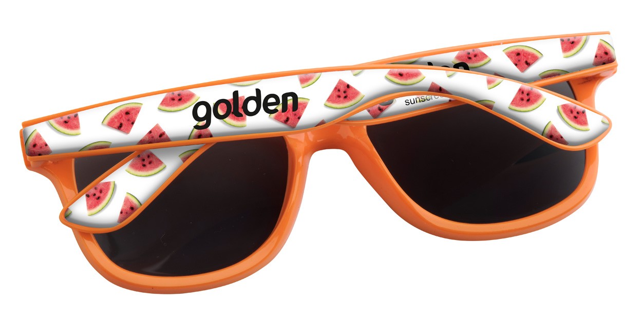 Ochelari de soare din plastic cu brațe speciale pentru epoxy. Cu protecție UV 400. Prețul include personalizarea cu epoxy. Cantitate minimă de comandă: 100 buc.