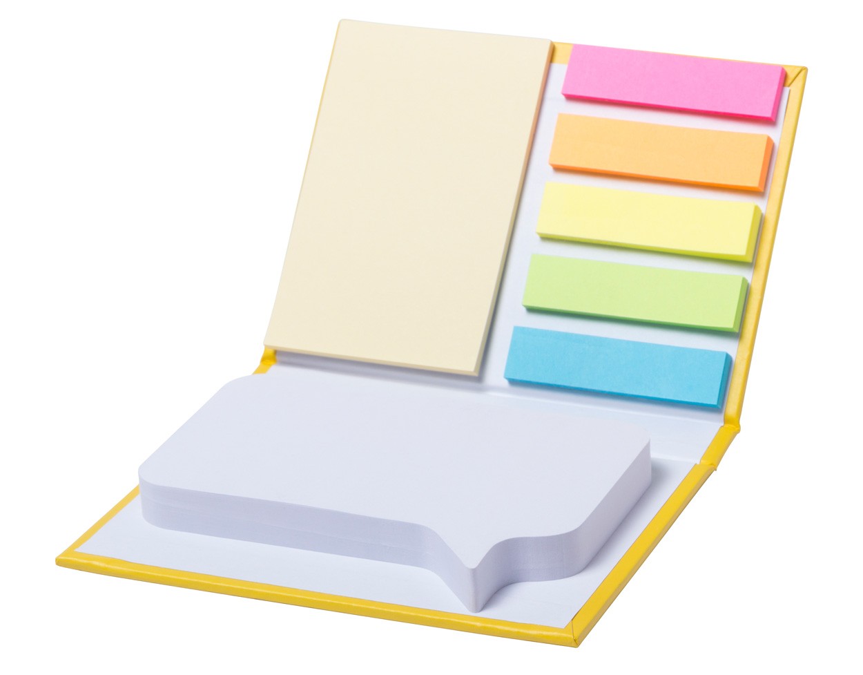 Notiţe de dimensiuni diferite (100 buc. 7x9 cm, 25 buc. 5 x 7,6 cm, 125 buc. 1,2 x 4,9 cm. ), în suport de hârtie reciclabilă.