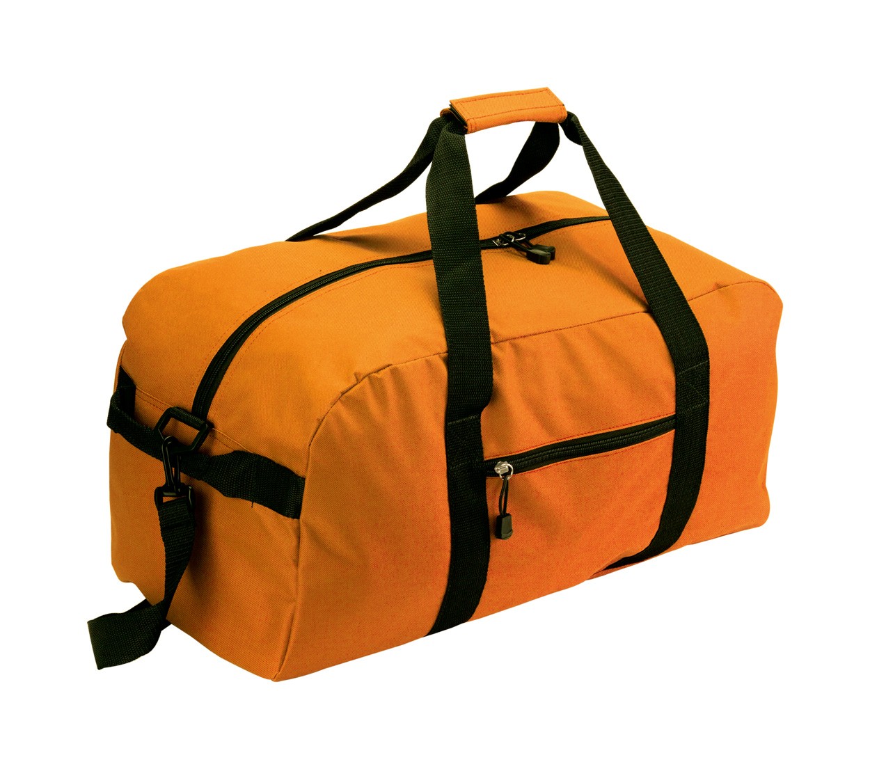 Geantă sport cu curea de umăr şi buzunare cu fermoar. Poliester 600D.