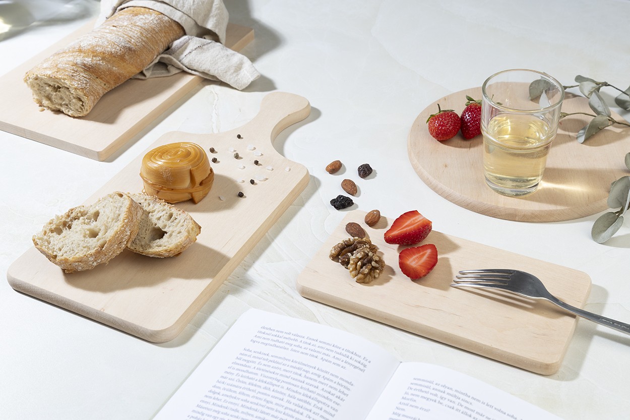 Tocător mic, realizat dintr-o singură bucată de lemn natural de arin. 100% natural și complet fără adeziv.