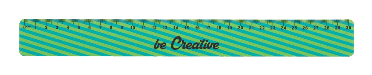 Riglă flexibilă, din plastic, de 30 cm, cu grafică personalizată. Prețul include imprimarea UV LED pe o parte. MOQ: 100 buc.
