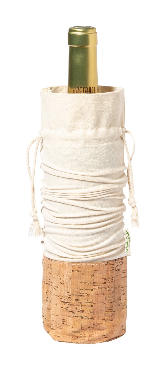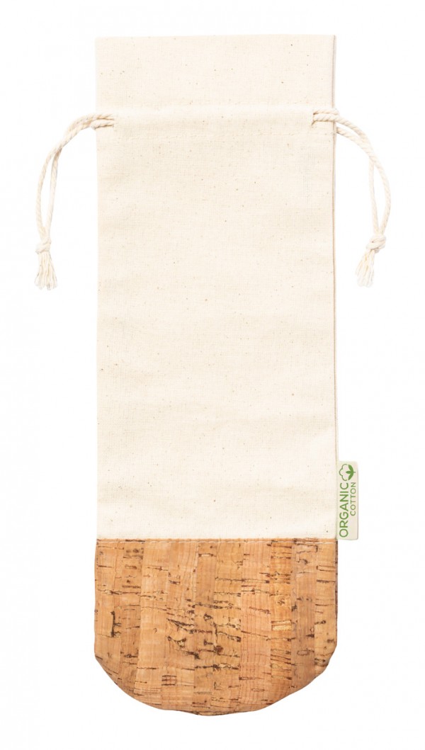 Geantă cadou, din bumbac organic și plută naturală, cu cordon, pentru 1 sticlă de vin.