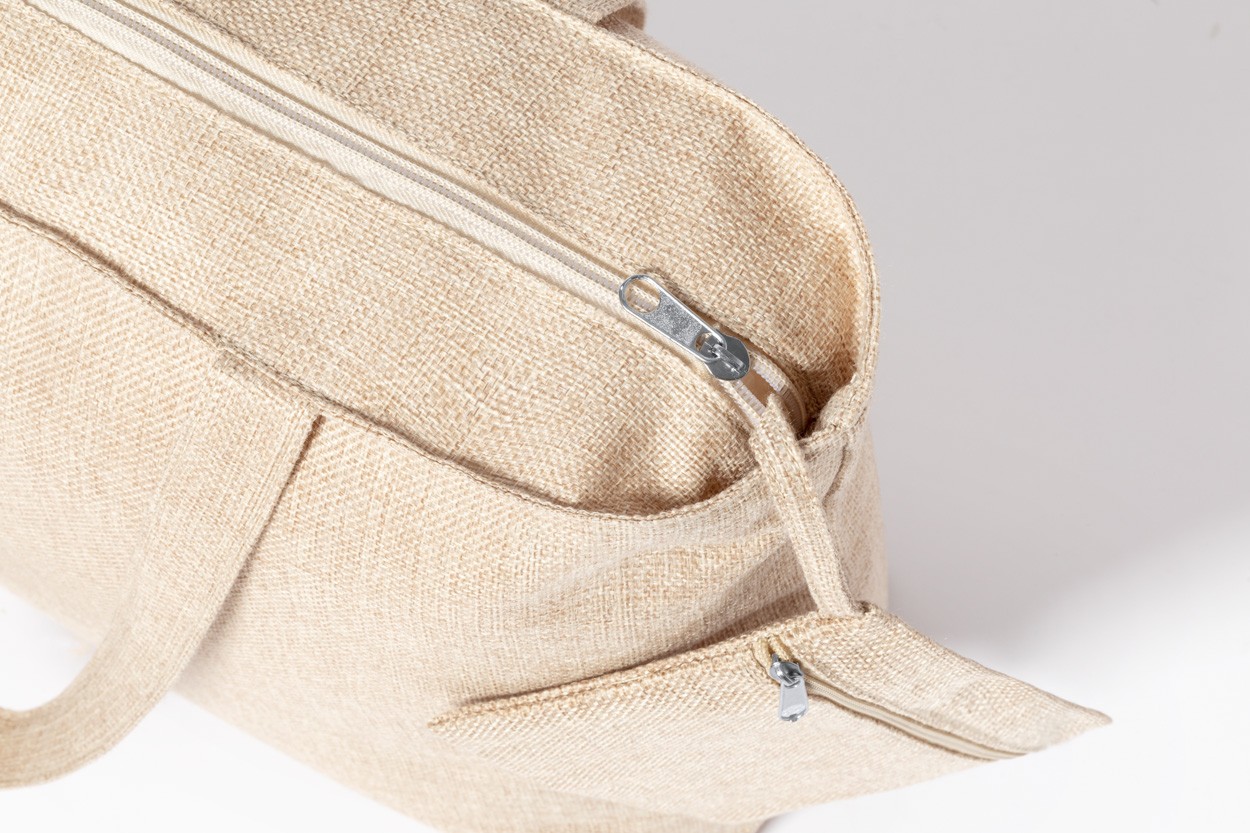 Geantă de plajă, din poliester, de culoare naturală, cu geantă de cosmetice asortată.
