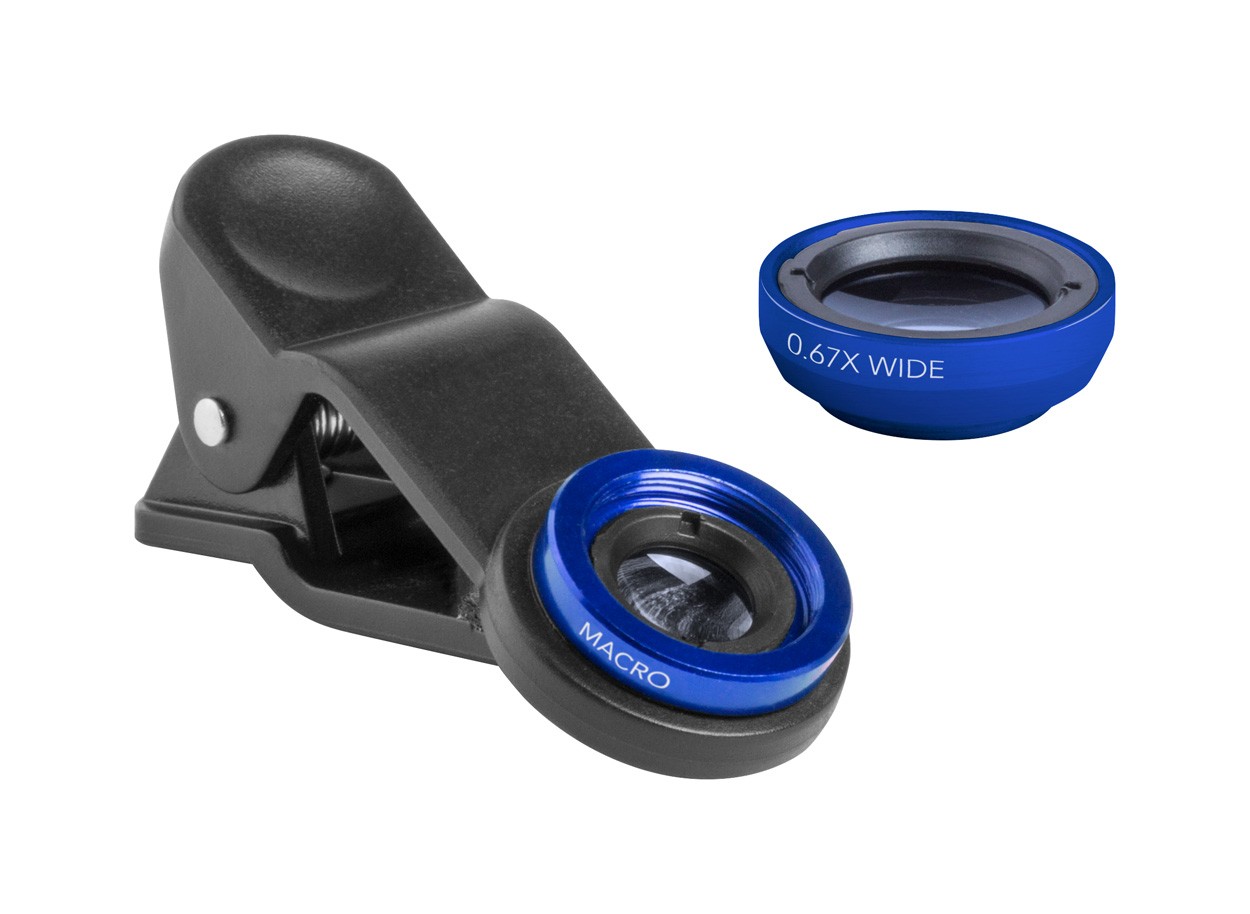 2 lentile pentru telefon mobil( macro și wide-angle), cu clips universal, în husă.
