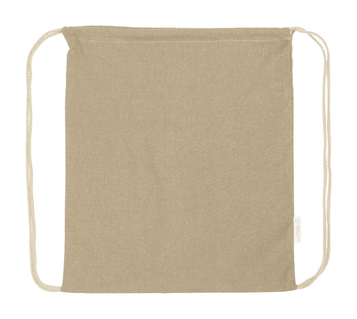 Rucsac cu șnur, din 70% bumbac reciclat și 30% poliester RPET, 140 g/m². Cu etichetă distinctivă din bumbac reciclat.