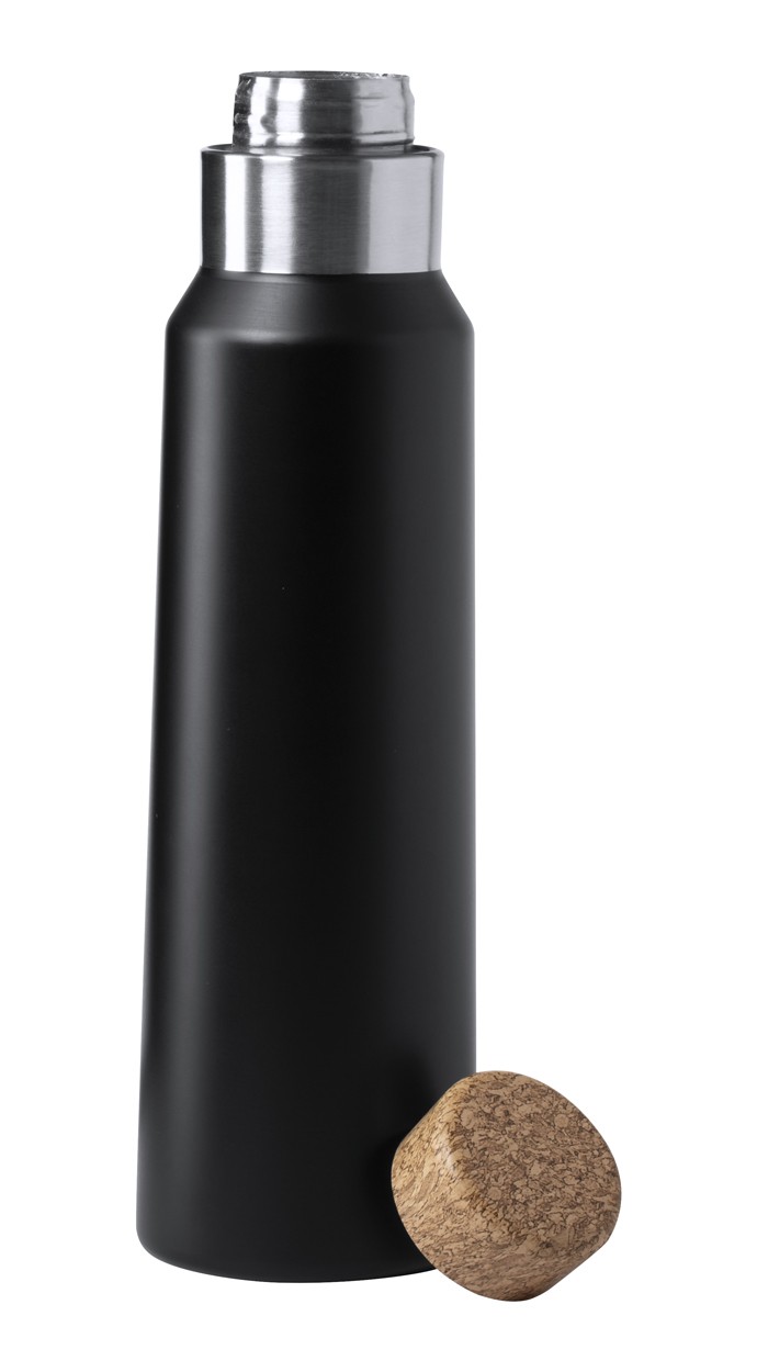 Sticlă sport din oțel inoxidabil, cu un singur perete, cu capac cu model de plută, 770 ml. În cutie de hârtie kraft. Nu este potrivită pentru băuturi carbogazoase.