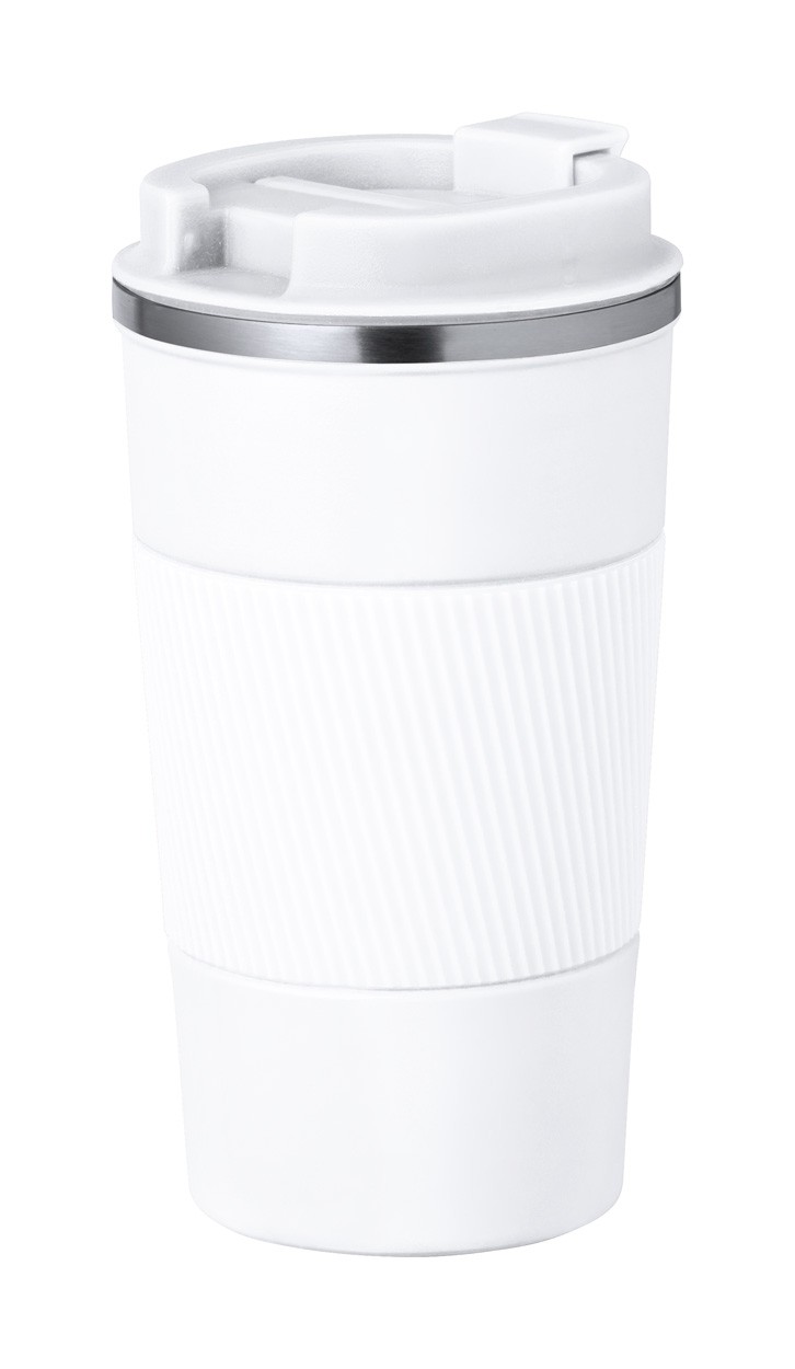 Cană termoizolată din oțel inoxidabil, cu perete dublu, cu capac și bandă de silicon, 400 ml.
