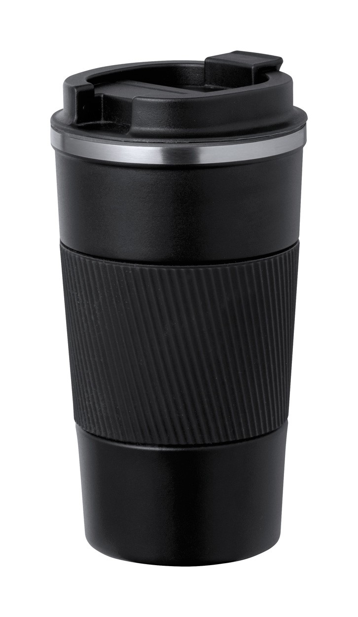 Cană termoizolată din oțel inoxidabil, cu perete dublu, cu capac și bandă de silicon, 400 ml.