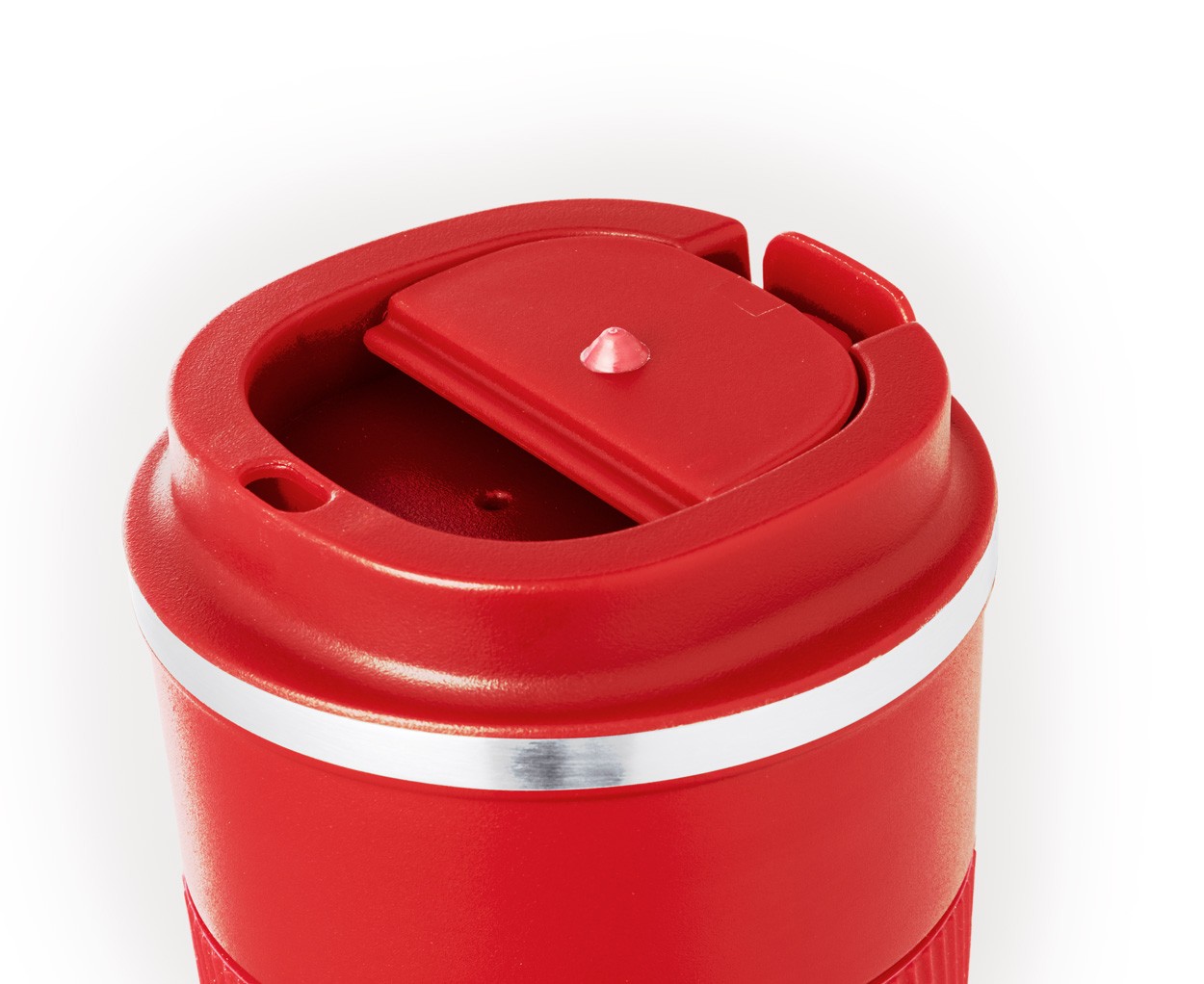 Cană termoizolată din oțel inoxidabil, cu perete dublu, cu capac și bandă de silicon, 400 ml.