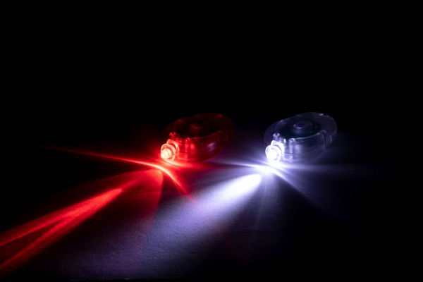 Set de 2 bucăți de lumină pentru bicicletă în carcasă din plastic PP. Include 1 lumină LED albă și 1 roșu cu curele elastice și 2 moduri de lumină. Cu 2 baterii buton.