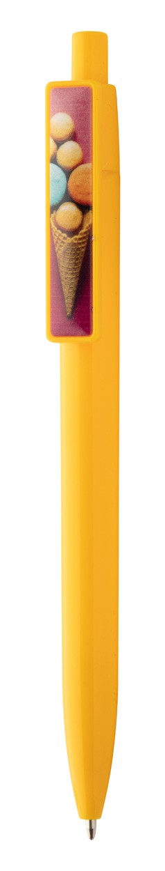 Pix din plastic cu mină albastră. Cu clips special pentru personalizare cu epoxy sau imprimare cu UV LED. Clipsul nepersonalizat se livrează separat.
