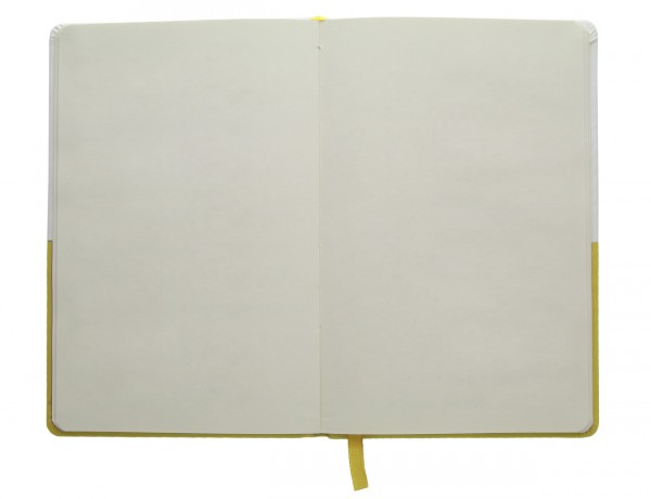 Carnețel A5 cu copertă din înlocuitor piele în două culori, cu 80 de coli albe. Cu banda de cauciuc și semn de carte.