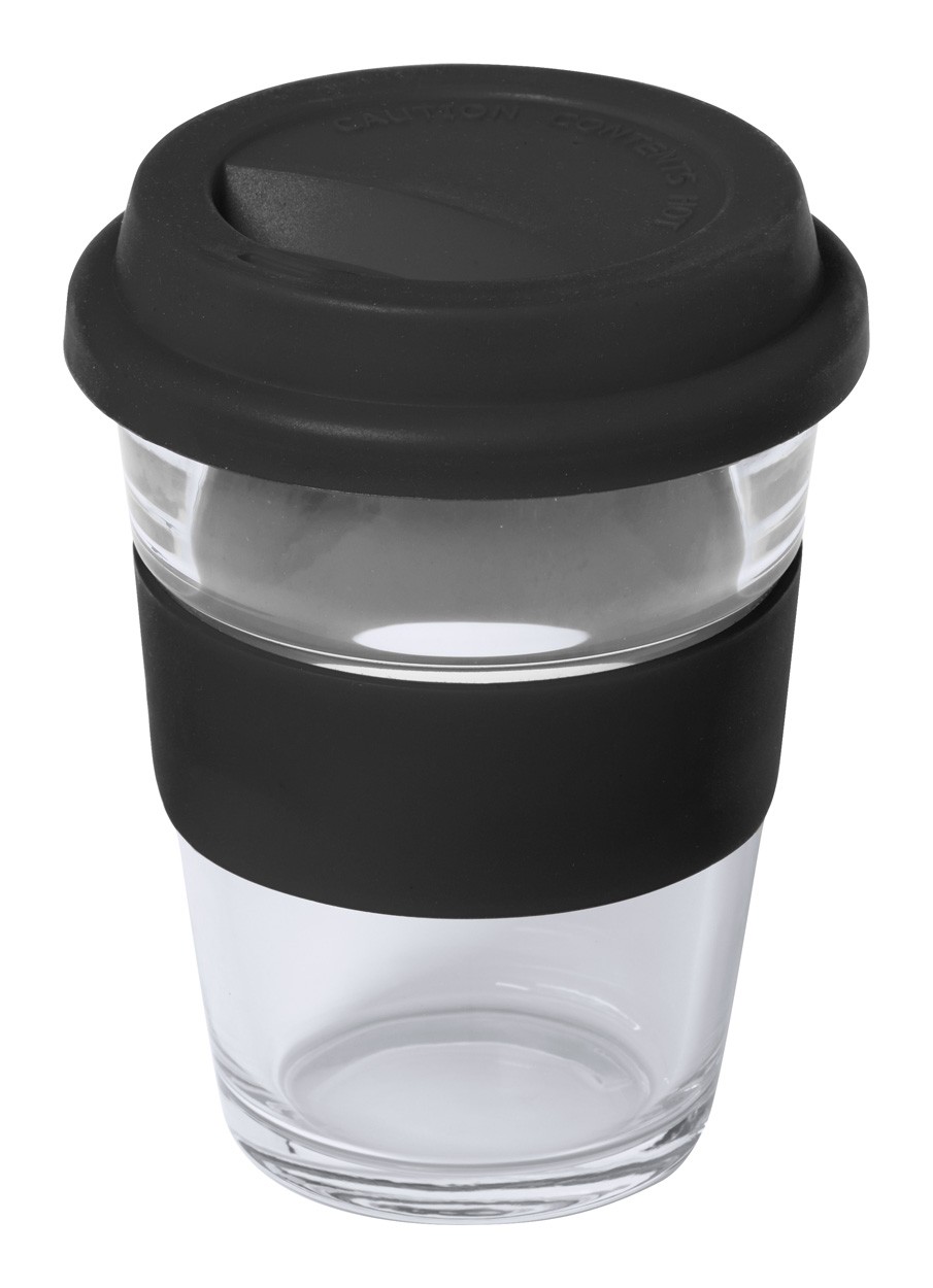 Cană de călătorie din sticlă, cu capac din silicon și mâner, 350 ml.