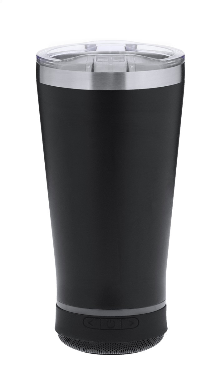 Pahar termoizolant cu pereți dubli, din oțel inoxidabil, cu capac pentru băut și difuzor wireless cu lumini LED multicolore, funcție de apelare mâini libere și baterie reîncărcabilă încorporată. 440 ml.