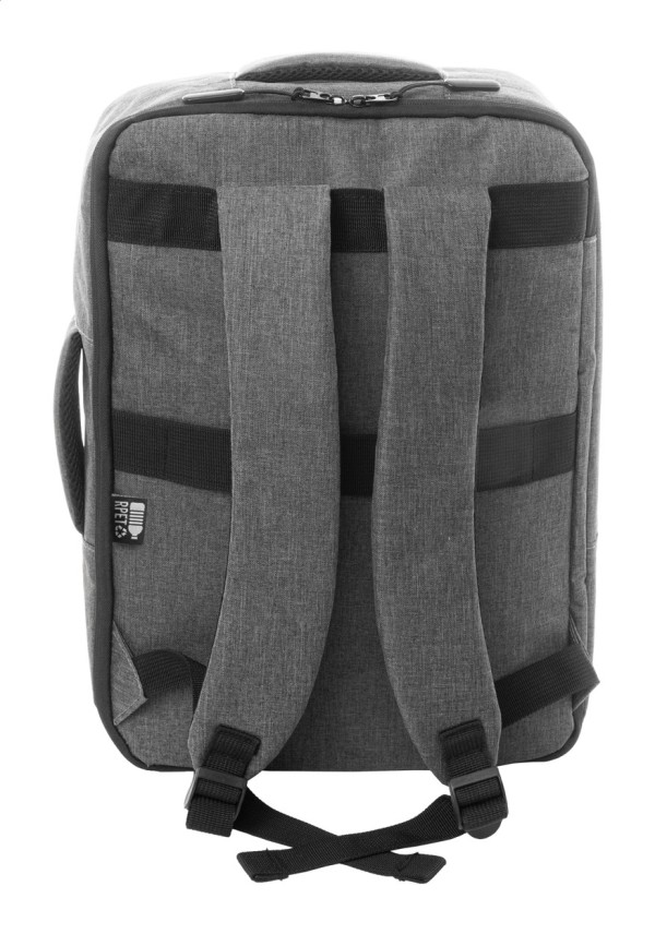 Rucsac RPET,cu dublă funcție și geantă pentru documente cu compartiment cu fermoar și compartiment căptușit pentru laptop (15"). Cu curea pentru cărucior, spate și curele de umăr căptușite. Poliester 300D RPET, cu etichetă distinctă RPET.
