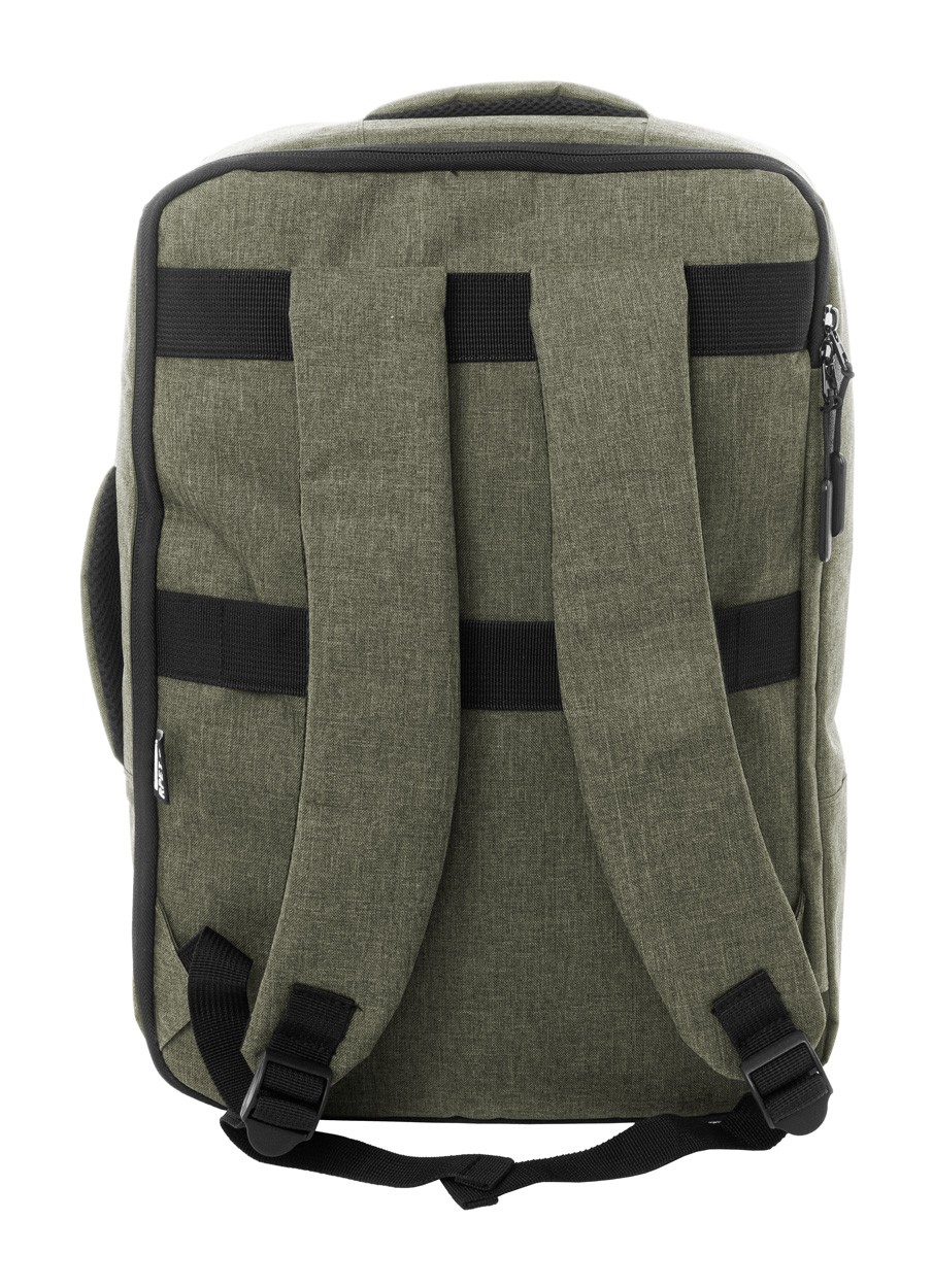 Rucsac RPET,cu dublă funcție și geantă pentru documente cu compartiment cu fermoar și compartiment căptușit pentru laptop (15"). Cu curea pentru cărucior, spate și curele de umăr căptușite. Poliester 300D RPET, cu etichetă distinctă RPET.