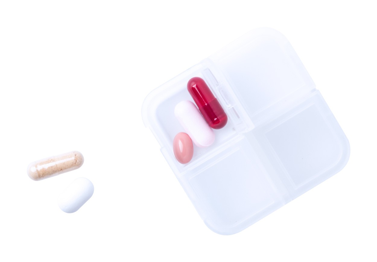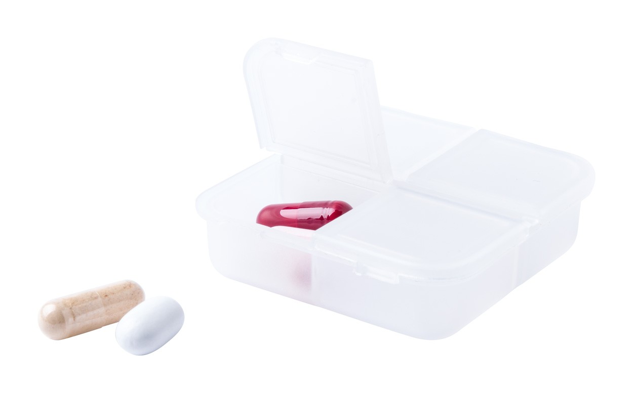 Cutie pentru medicamente, din plastic, cu 4 compartimente.