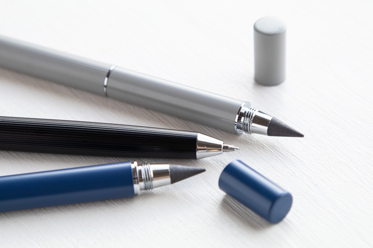 Pix din metal 2 în 1 și pix fără cerneală în cutie de cadou neagră. Cu minaă albastră și vârf din aliaj metalic, care oxidează hârtia.