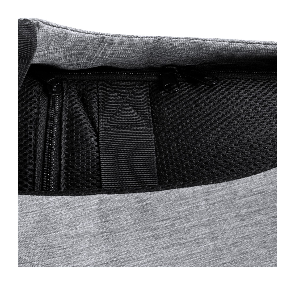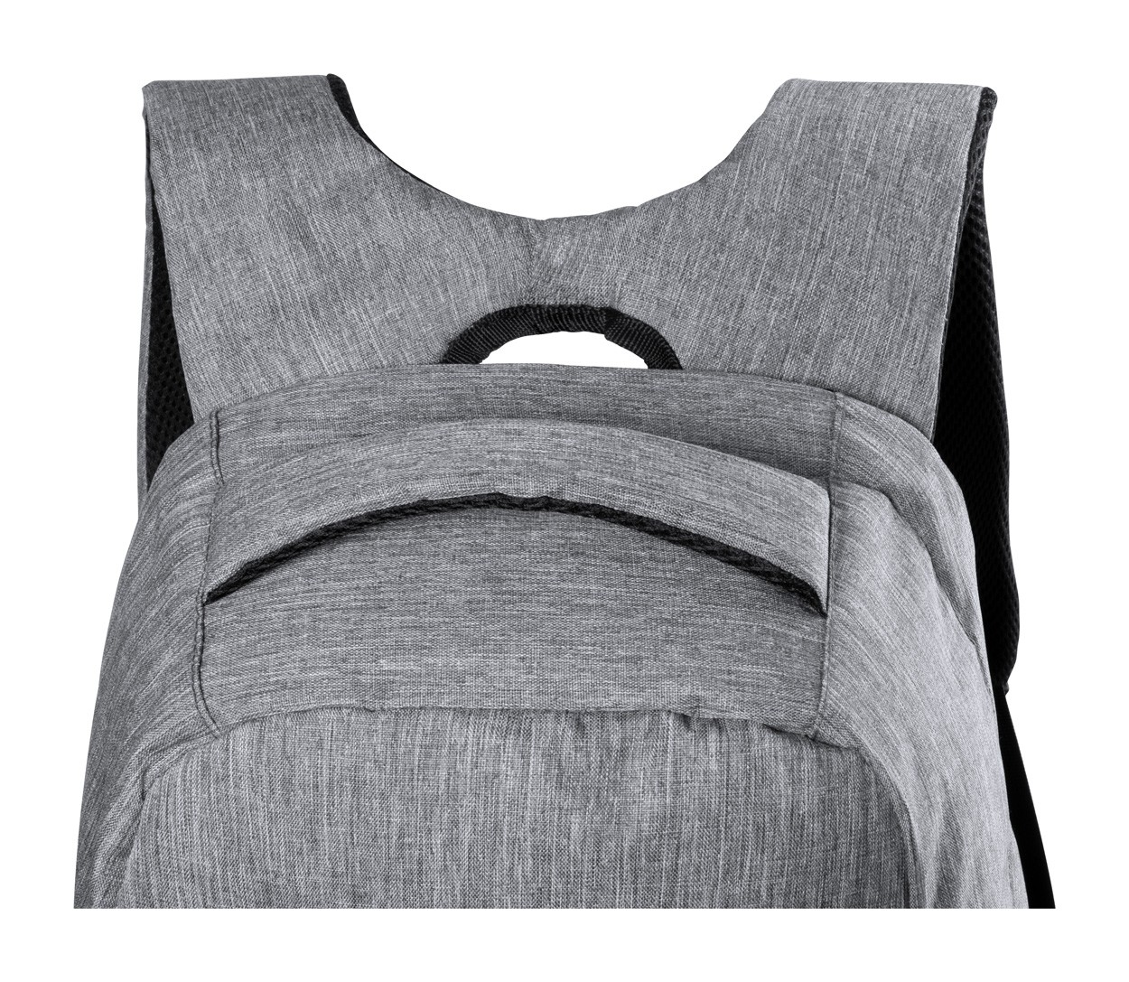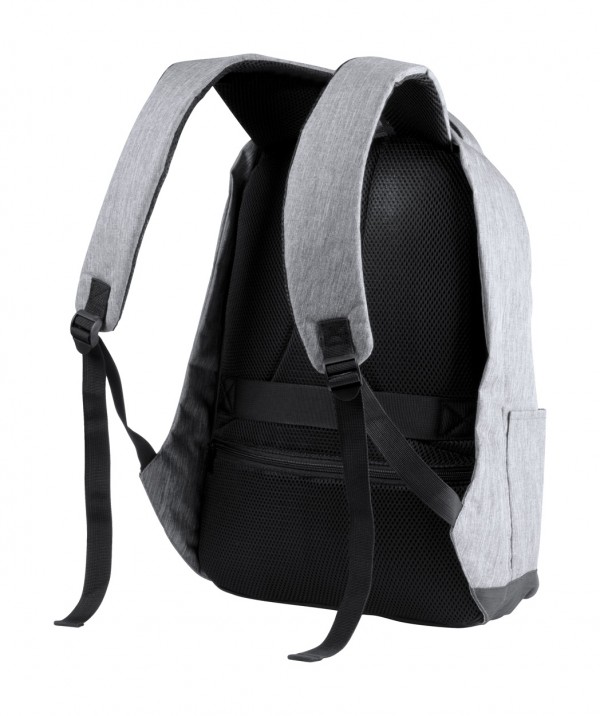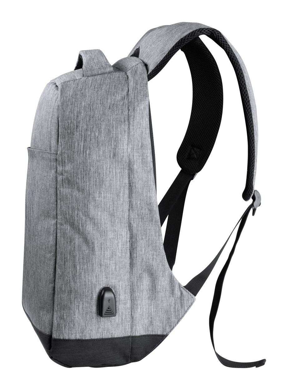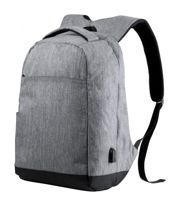 Rucsac antifurt cu mai multe buzunare, compartiment căptușit pentru laptop(15 ") și pentru tabletă (12"), spate și bretele căptușite. Curea pentru cărucior și conexiune USB încorporată pentru power bank. Poliester 300D.