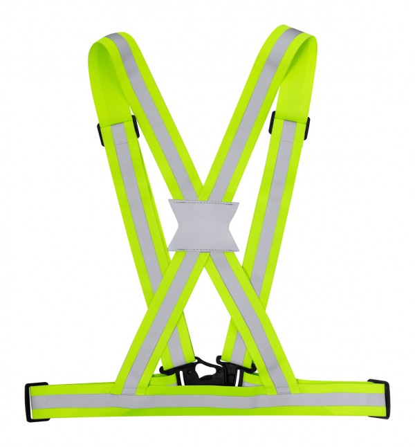 Vestă de vizibilitate, din poliester, cu 4 catarame reglabile și închidere cu cataramă. Echipament individual de protectie: certificat EN17353.