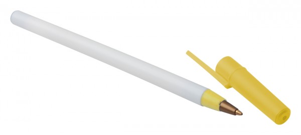 Pix din plastic cu corp alb şi capac colorat. Mină albastră.