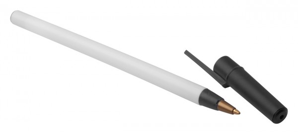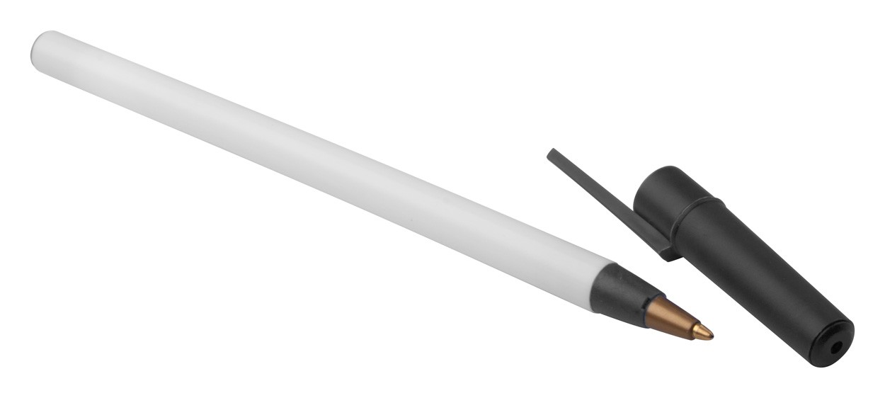 Pix din plastic cu corp alb şi capac colorat. Mină albastră.