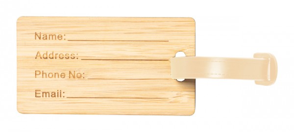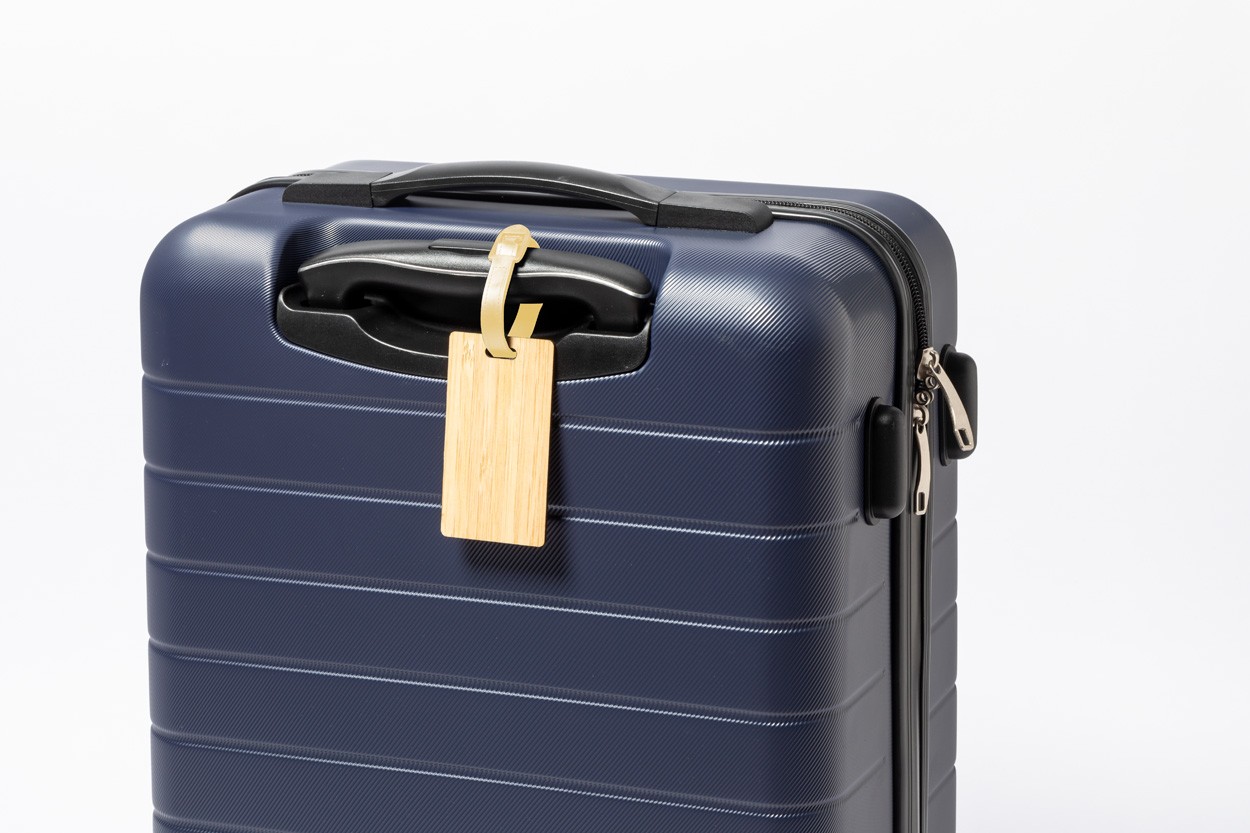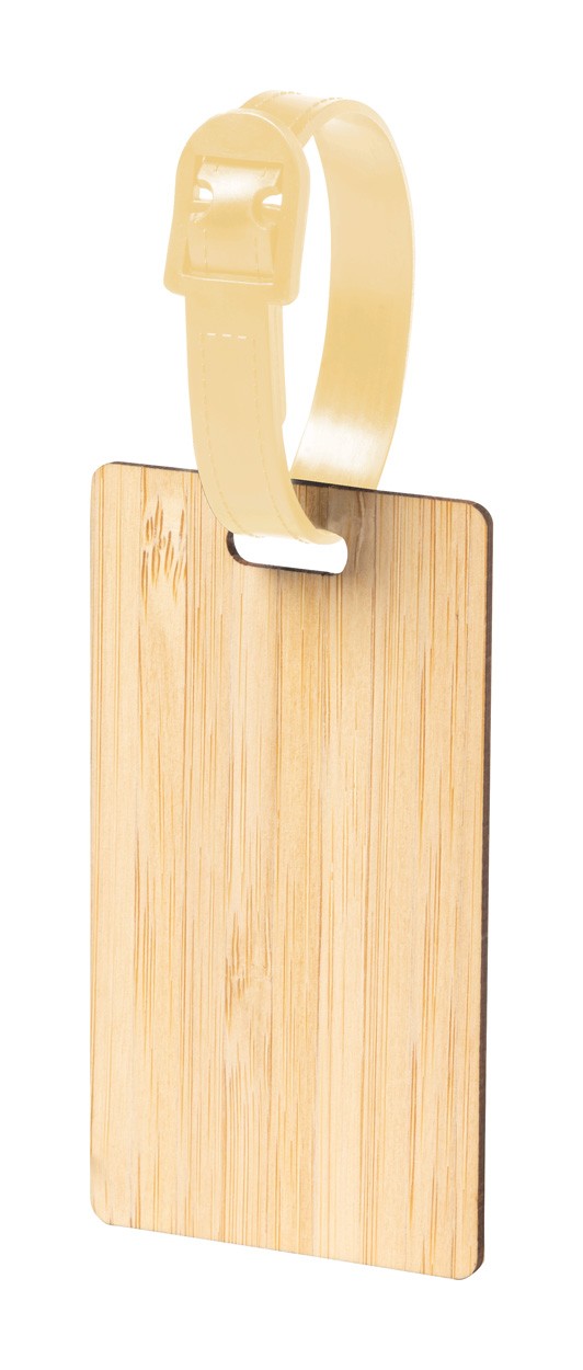 Etichetă pentru bagaje, din bambus, cu închidere cu cataramă.