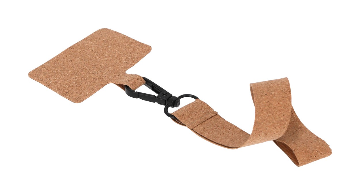 Curea de mână cu suport pentru telefon mobil, din plută naturală, și carabină metalică