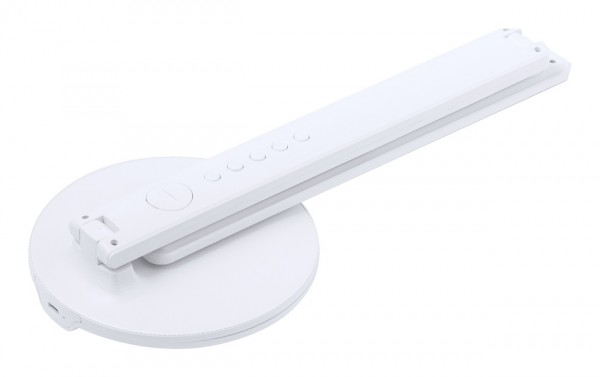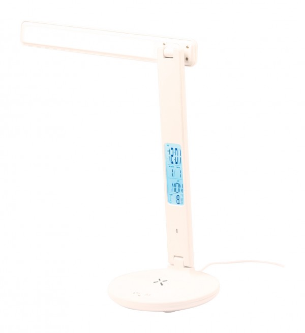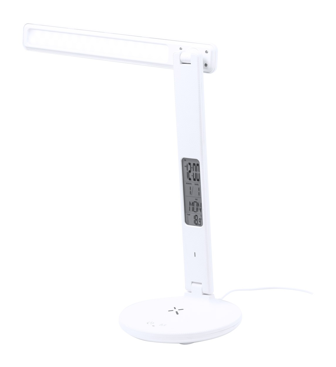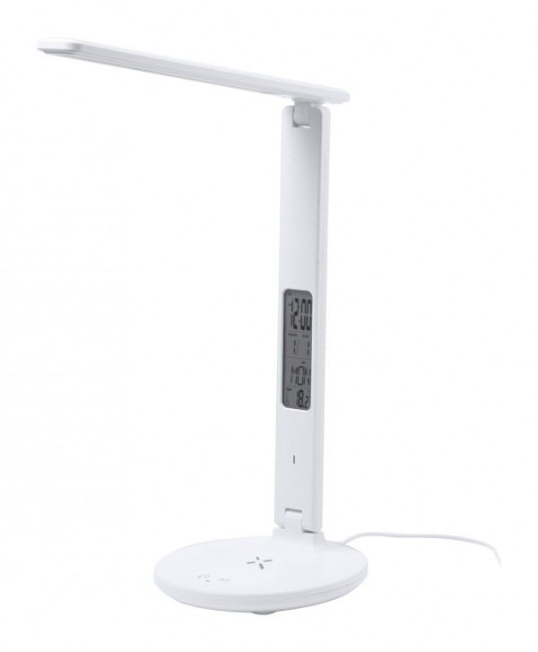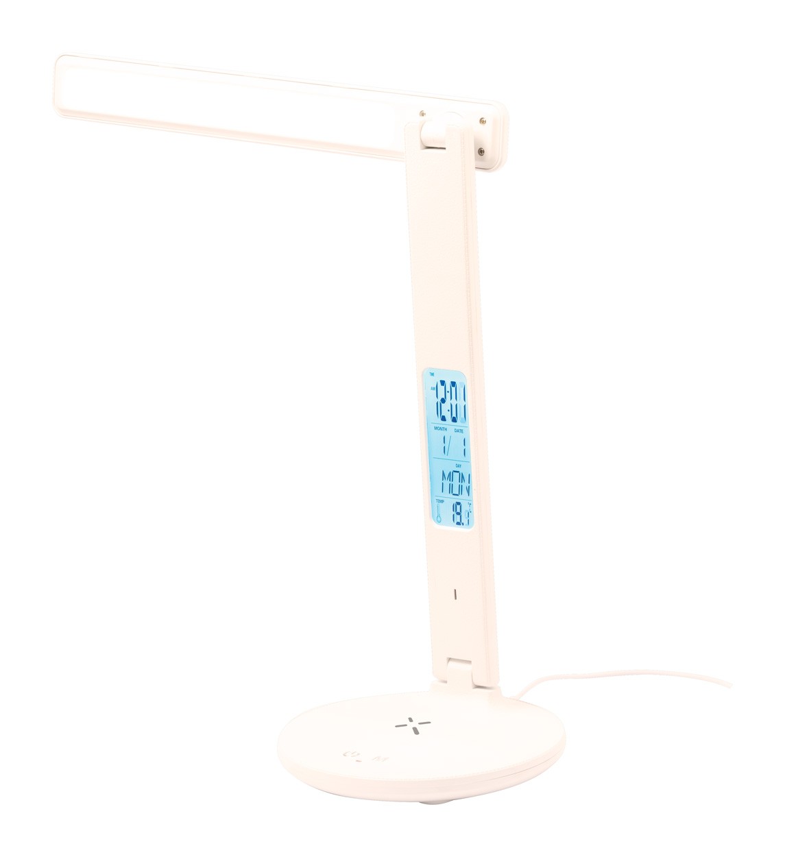Foldable, aluminium and ABS plastic multifunctional desk lamp with built-in wireless fast charger (10W). With 60 LEDs, 3 light modes, adjustable brightness and height. Including USB charger cable.