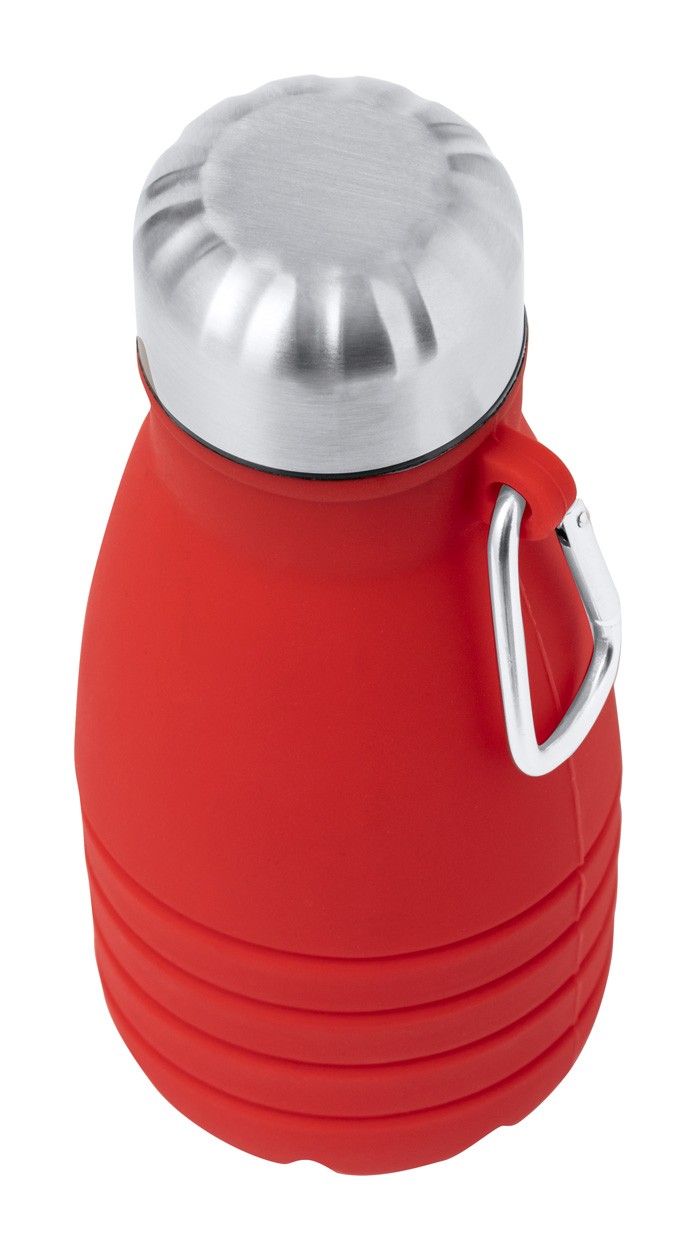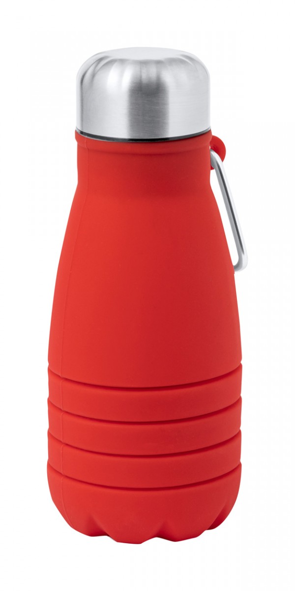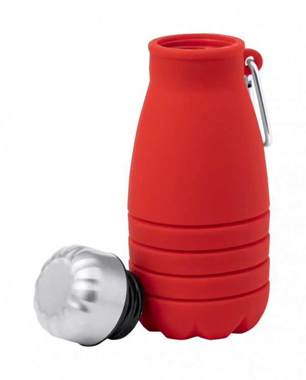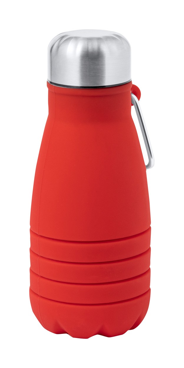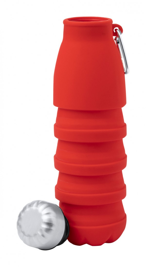 Sticlă sport, pliabilă, din silicon, cu capac și carabină din oțel inoxidabil. 550 ml.